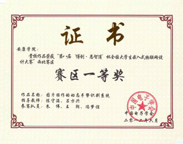 6月9日-10日,第八届 “博创杯·恩智浦”全国大学生嵌入式物联网设计大赛(西北赛区)在西安邮电学院南校区举行,西北五省16所高校的126支队伍报名参赛,经过层层选拔最终有63支队伍进入了西北赛区的决赛。这次比赛中我校有两支队伍进入西北赛区决赛。电子与信息工程系朱伟、王朗、冯梦谊同学设计,陈守满、吕方兴老师指导的《图片操作的动态手势识别系统》获一等奖,王江炜、王兵权、谭丽丽设计,张兴辉老师指导的《基于ARM9的温室茶树培植自动监控系统》获得三等奖。朱伟、王朗、冯梦谊同学设计的作品《图片操作的动态手势识别系统》被选送代表西北赛区参加7月7日在北京航空航天大学进行的全国总决赛。