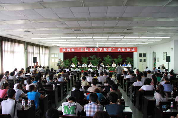 为纪念毛泽东同志《在延安文艺座谈会上的讲话》发表70周年,提高基层书法理论和书法技艺水平,6月15日上午,由安康学院、安康市慈善协会、安康市教育局联合主办的陕西省“书法名家下基层”活动启动仪式在安康学院图书馆隆重举行。省决策咨询委员会主任、省慈善协会会长徐山林,省书法家协会主席雷珍民,省教育书法研究会会长屈应超,省慈善书画研究会常务副会长兼秘书长张玉龙,省教育书法研究会常务副会长兼秘书长陈云龙,市人大常委会副主任马孝芳,市教育局副局长王烈勋,市书法家协会主席马昌琪,市慈善协会副会长王友根,学校党委书记杨涛、副书记胡鸿晓以及省市书法名家、书法爱好者等参加了启动仪式。仪式由雷珍民主持。
