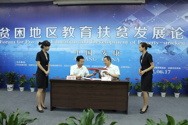 论坛举行期间,北京大学贫困地区发展研究院与安康学院签订了共建研究基地的合作协议。双方约定将依托北京大学一流办学资源和安康学院所处秦巴贫困连片区的研究条件,共同组建研究团队,开展各项研究工作,以解决困扰贫困地区发展的重大问题。