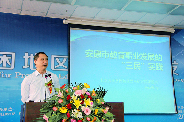 北京大学贫困地区发展研究院课题组作了《安康市教育事业发展的“三民”实践》的研究报告。报告对国内外“教育扶贫”新理念与新实践进行了分析,全面总结了安康“教育移民”、“教育慧民”和“教育富民”实践中的理念、思路、举措和成绩,认为安康市在教育扶贫发展中的经验在连片特困地区中具有典型的示范带头作用。同时,研究报告还提出了利用民间资本发展教育,实施多项措施鼓励“移民”等建议。