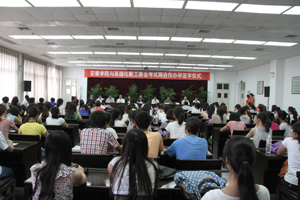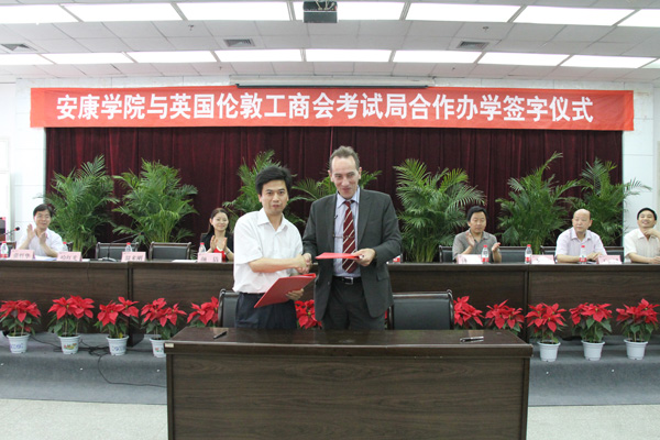 6月19日下午,我校与英国伦敦工商会考试局(LCCI)合作办学签字仪式在我校图书馆六楼报告厅举行。LCCI亚洲区总裁 Mark Disney、LCCI中国市场发展中心总经理颜洁女士、副总经温来纲先生,学副校长陈刚教授、教务处处长钟生海、就业处处长丁义国、外语系主任哈红光教授、外语系党支部书记李延福和外语系部分师生代表参加了签字仪式。