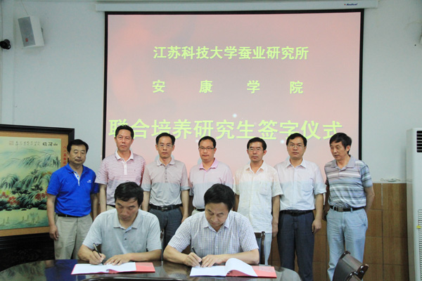 6月25日,我校与江苏科技大学蚕业研究所在学校第一会议室签署了联合培养研究生协议。江苏科技大学蚕业研究所所长张国政研究员,副所长沈兴家研究员,我校王兴林校长,向纪明副校长以及科技处、农生院的相关人员参加了签字仪式。签字仪式由向纪明副校长主持。