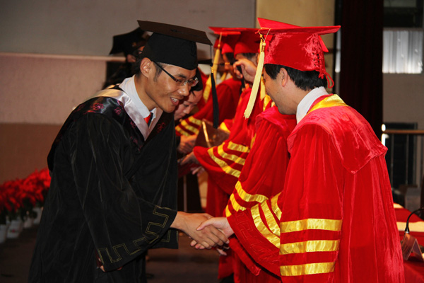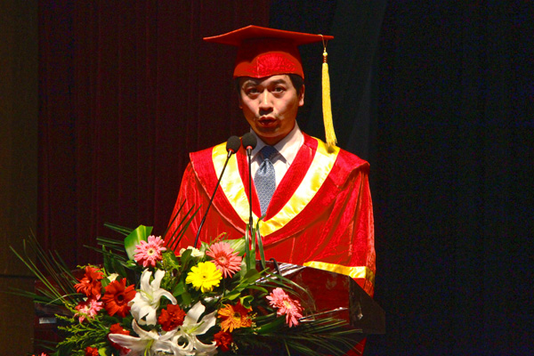韩润林博士代表教师对毕业生们表示祝贺并寄予殷切的期望。石为径同学代表全体毕业生对母校给予的悉心栽培表示感谢,祝福母校发展壮大,并表示一定不辜负母校和恩师的期望,在另一片广阔的天地里建功立业。