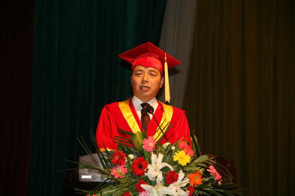 王兴林校长代表学校党政和全体师生向2012届毕业生顺利完成学业表示衷心的祝贺!王兴林深情讲到,大家从五湖四海相聚到汉水之滨,共同参与和见证了学校的大发展、大建设、大提高,在学校前进的征程中留下了拼搏进取的印记。几年的大学生活,使同学们获得了求职自立的知识,增长了独立思考的能力,懂得了做人做事的道理,对人生、对事业有了更多、更深的理解。大家朝气蓬勃、努力拚搏的丰采,刻苦学习、锐意进取的精神,已经融入到学校发展的方方面面,凝结成为母校的历史和文化。