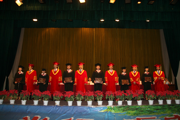闵小平宣读了对131名优秀毕业生表彰的决定。学校领导为优秀毕业生颁发了荣誉证书。