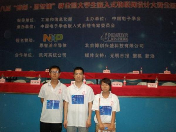 7月8日,第八届“博创·恩智浦”杯全国大学生嵌入式物联网设计大赛全国总决赛在北京航空航天大学举行,我校代表队经过角逐获得三等奖。