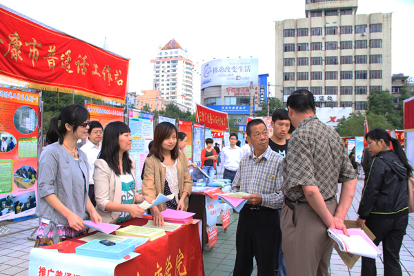 作为安康唯一的本科院校,服务地方文化建设是我们一直以来的办学定位。学校派出由教务处副处长常权记和中文系副主任杨运庚带队、中文系五名师生组成的推广普通话宣传小组,代表学校参与此次启动仪式。
