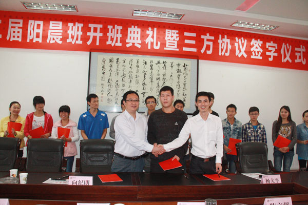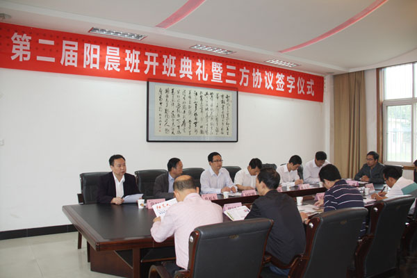 9月22日,第二届“阳晨班”开班典礼暨签字仪式在西校区8114会议室举行。学校党委副书记胡鸿晓、副校长向纪明及合作发展处、教务处、学工部、就业处、农生院等部门负责人,阳晨公司总经理杨大平,总经理办、人力资源部等部门领导,第二届“阳晨班”全体学员,首届“阳晨班”部分学生代表参加了典礼。