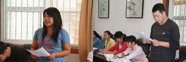 第一、二届阳晨的学生代表袁婷娟、夏巍二位同学分别代表各自班级作了发言。