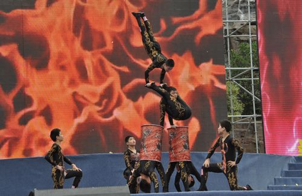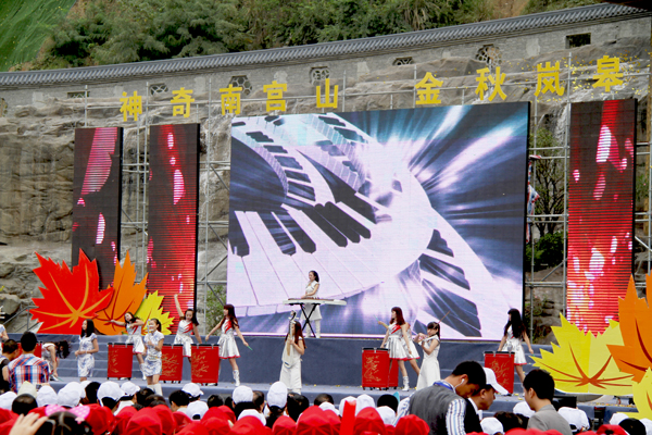 在开场舞《欢腾的南宫山》震撼激昂的音乐声中,首届中国•南宫山旅游文化节开幕式文艺演出“山水岚皋邀您来”拉开大幕。豪情澎湃的序曲歌舞,璀璨夺目的舞台冷焰,绚丽迷人的LED视频,将演出现场烘托的多姿多彩、动感十足。