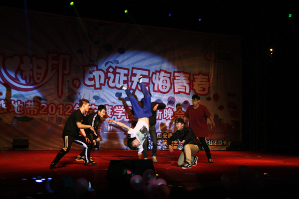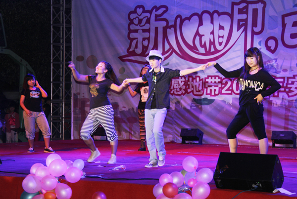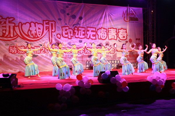 来自各系的演艺精英,用热情奔放的腰鼓,婀娜多姿的傣族舞,活力四射的健美操,虎虎生风的双节棍,热辣激情的街舞和宛转悠扬的歌声,尽情地释放着青春的活力,使晚会现场成为了一片欢腾的海洋。