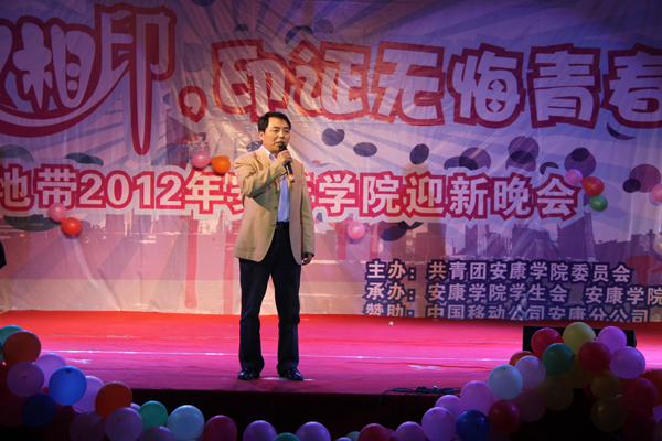 10月12日、14日,我校在江南和江北校区举行“新心相印,印证无悔青春”迎新晚会。学校党委副书记胡鸿晓、党委宣传部、学工部、保卫处、就业处等相关部门领导及各系党总支书记分别在江南校区和江北校区与2012级新生齐聚一堂,共同欣赏了节目。