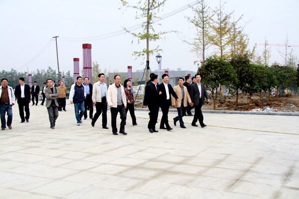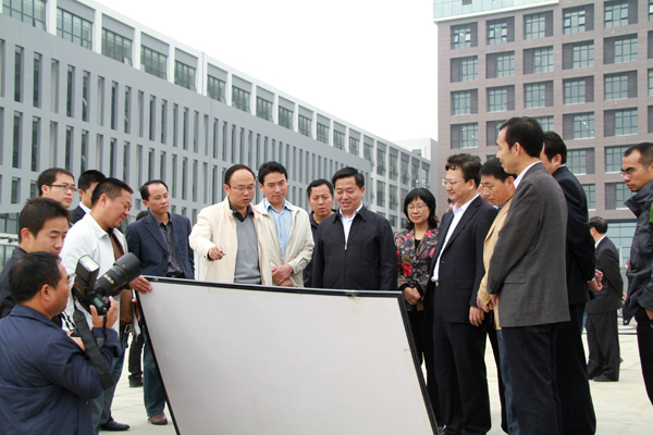 景俊海一行观看了江北校区规划设计图,实地查看了教学、科研、生活等基础设施,听取了学校党委副书记胡鸿晓,党委副书记、纪委书记闵小平,副校长杨行玉等关于江北校区总体规划设计理念和建设规划布局、校园文化建设、学生学习生活等汇报。