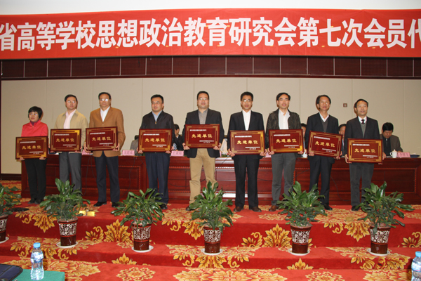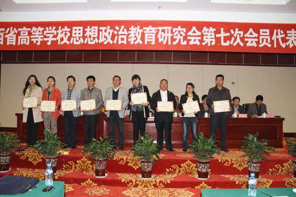 许文学宣读了对2008-2011年度陕西高校思想政治教育研究先进集体和先进个人的表彰决定。大会为代表颁发了奖牌和荣誉证书。我校政治与历史系党总支书记谢安国荣获“创新奖”。