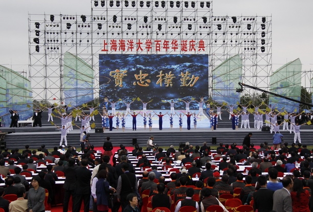 江泽民同志为该校百年校庆亲笔题词:“发扬优良传统,不断开拓创新,把上海海洋大学建设成为一流的高水平特色大学”。中共中央政治局原常委、国务院副总理李岚清,全国人大常委会原副委员长李铁映分别题词祝贺。中共中央政治局委员、上海市委书记俞正声,全国政协副主席、科技部部长万钢,上海市委副书记、市长韩正,中央驻澳门联络办公室主任白志健,上海市委副书记殷一璀以及教育部、农业农村部、国家海洋局等发来贺信祝贺。 兄弟学校、校友、师生代表共12000余人出席了庆典大会。