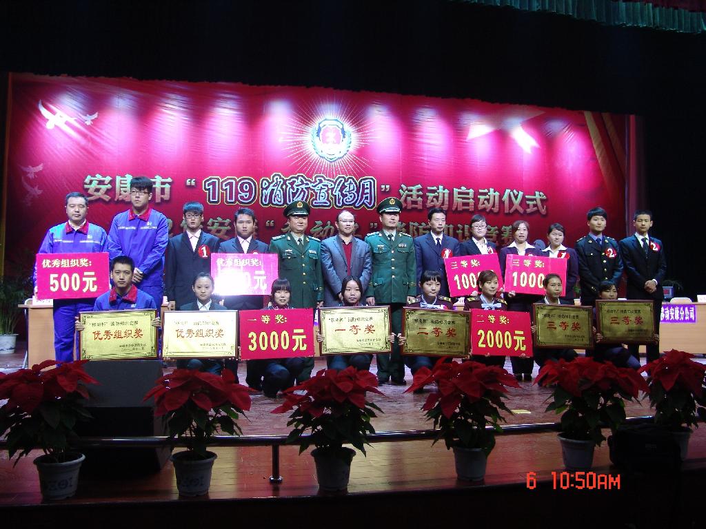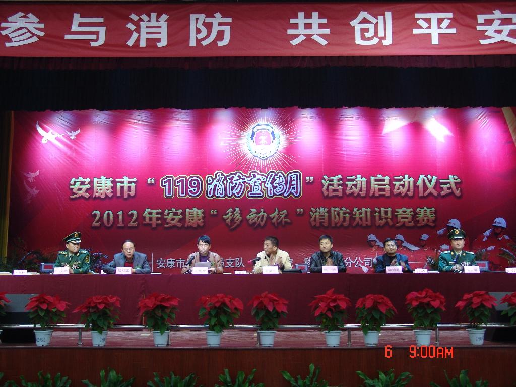 11月6日上午,由我校和安康市公安消防支队、安康移动公司联合举办的“2012年‘119消防宣传月’启动仪式暨消防安全知识竞赛”活动在江南校区举行。安康市副市长王安利、学校党委书记杨涛、副校长杨行玉、安康市公安消防支队支队长苗文岐等领导出席了启动仪式,副市长王安利在消防宣传月活动启动仪式上中作了重要讲话。启动仪式后,举行了“移动杯”消防安全知识竞赛。杨行玉副校长等领导为获奖代表队颁奖。