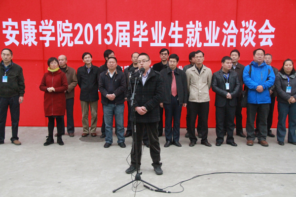 胡鸿晓致欢迎辞,对全国各地百余家用人单位莅临我院招聘人才,支持我院毕业生就业工作表示感谢。西安万汇浩然集团公司人力资源部总监梁均田代表用人单位发言,感谢安康学院对洽谈会精心的准备,表示要尽可能多招录安康学院毕业生回报主办方的热情接待与服务。