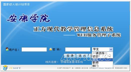 1、安康学院正方现代教学管理系统:http://61.134.47.194/