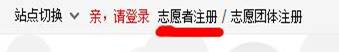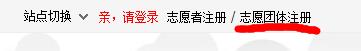①首先登陆志愿安康,在网页左上方选择:志愿团体注册