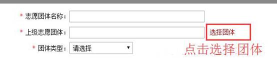 ③选择上级志愿团体时,点击右方“选择团体”菜单
