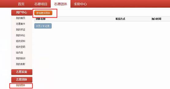 ③审核通过后,登陆志愿安康,登陆账号成功后,点击页面左方的“我的团体”,在随后的页面上方点击“参加更多团体”