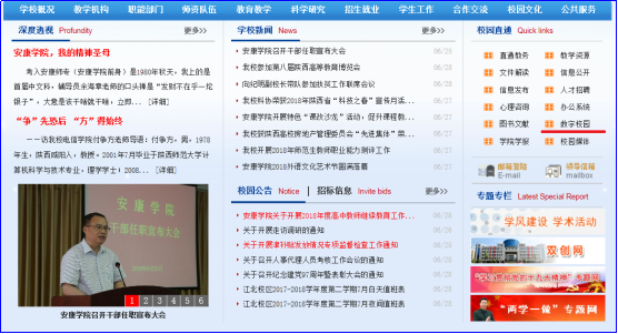 第一种方式,打开学校官方网站,点击右侧“校园直通”栏目里的子栏目“数字校园”后,直接进入。