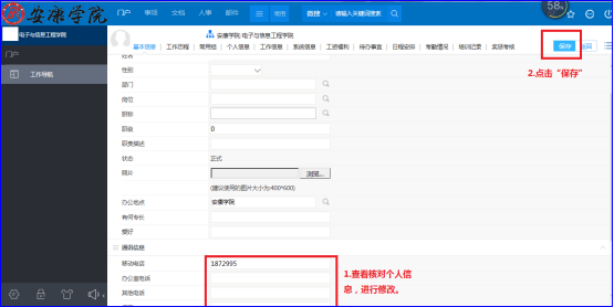 另请,各单位OA管理员督促本单位人员登录OA系统,查看个人通讯录信息是否准确,存在问题的请自己修改和完善。具体操作流程如下: