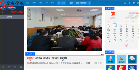 第一步,登录个人账号,进入界面后,点击个人姓名,如下图。