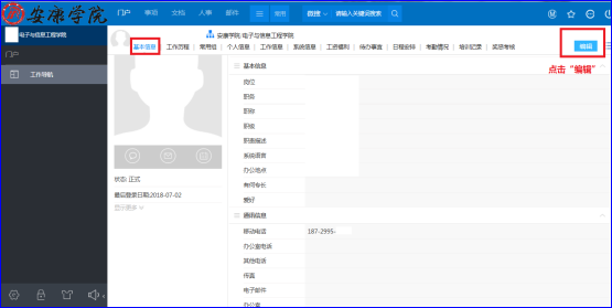 第二步,进入个人基本信息界面,查看通讯录信息,需要修改信息的点击“编辑”。