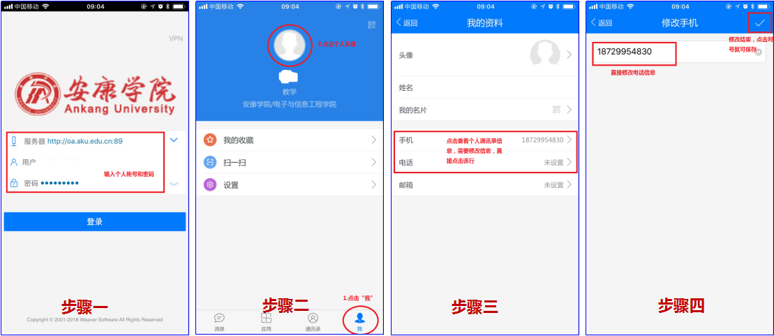 方式二:登录手机移动端端查看并修改个人通讯录信息。