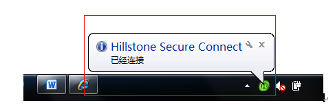 4、安装完成后在桌面会出现一个Hillstone Secure Connect的图标,双击后出现登陆框。输入密码,当任务栏右下角提示连接成功即可。