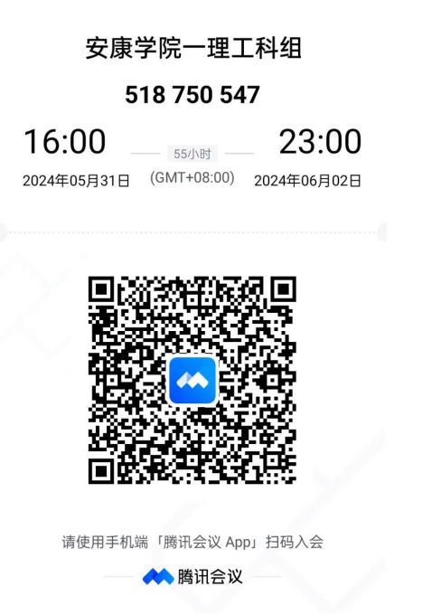 (二)线上观摩。本次比赛由腾讯会议进行全程直播。请各位老师扫描二维码或在腾讯会议APP中输入会议号码进行线上观摩。