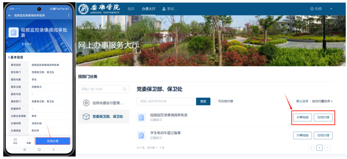 为进一步提升学校管理与服务信息化水平,提高师生办事效率,更好地服务师生,我校“一网通办”的办事大厅功能已完成初步调试,此次共上线12个办事事项,涉及保卫处和信管中心两个部门,后续学校将根据师生使用需求,不断完善网上办事服务流程。