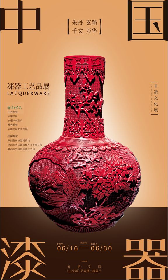 为弘扬中华优秀传统文化,展示漆器艺术的独特魅力,我院精心策划举办“朱丹玄墨·千文万华”漆器工艺品展。本次展览汇聚漆艺名家精品,涵盖传统漆画、雕漆、脱胎漆器、镶嵌漆器等40余件佳作,系统展现漆艺的历史脉络与当代创新。现诚邀广大师生莅临参观。