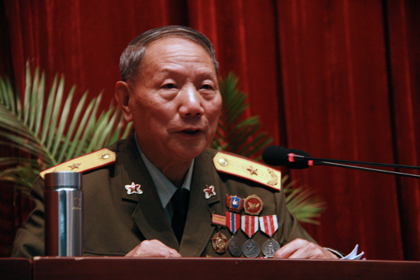 这是王安少将第二次回到母校,年龄的增大似乎没有在他的身上留下任何痕迹,这位已经78岁高龄的老人,一如四年前在北京见到他一样地精神矍铄,思维敏捷,谈笑风生,亲切热情。单从看外表,除了一身已经褪色的军人便装和他的昂首阔步显示出军人的气宇轩昂,他就像众多的其他老人一样慈眉善目、敦厚朴素。