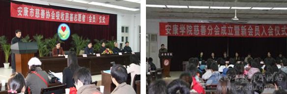 安康市慈善协会吸收慈善志愿者仪式在安康学院举行(左图) 安康学院慈善协会分会成立(右图)