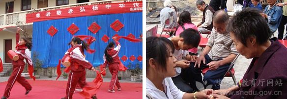 学生志愿者为福利院的老人们表演节目 学生志愿者为福利院的老人们剪指甲