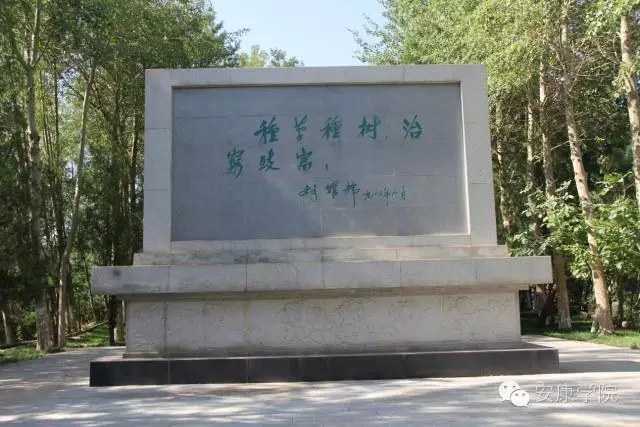 兰州徐家山森林公园“支甘纪念林”里矗立的胡耀邦题词“种草种树,治穷致富”碑文