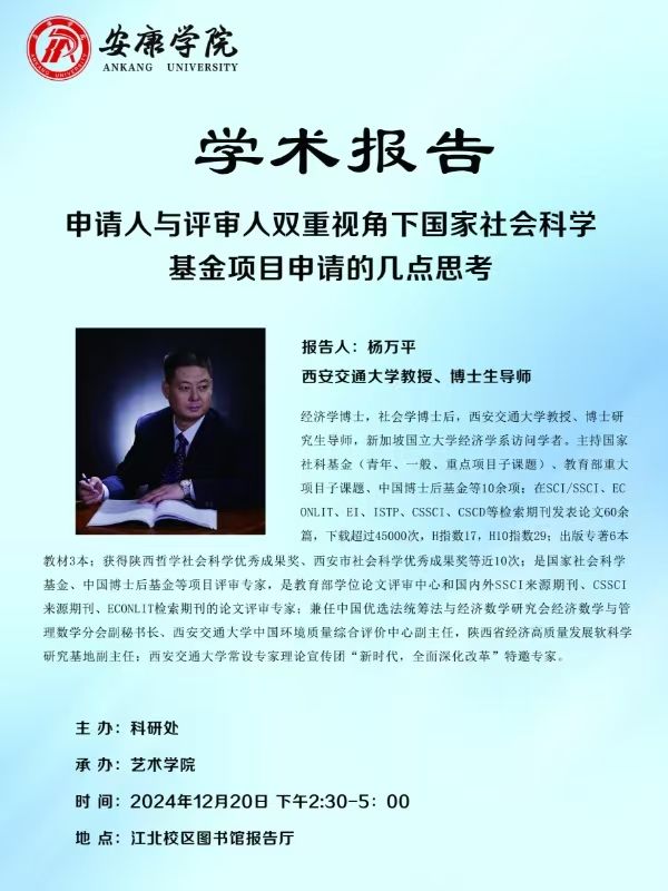 报告主题:申请人与评审人双重视角下国家社会科学基金项目申请的几点思考